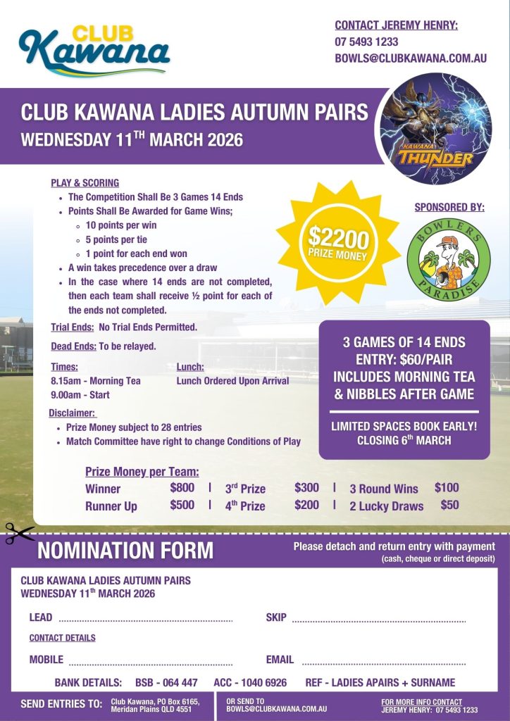 The Club Kawana Ladies Autumn Pairs is locked in for Wednesday 11th March 2026!